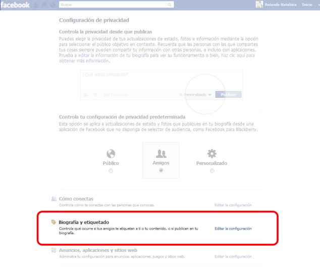 2. Elegí Editar la Configuración de Biografía y Etiquetado.